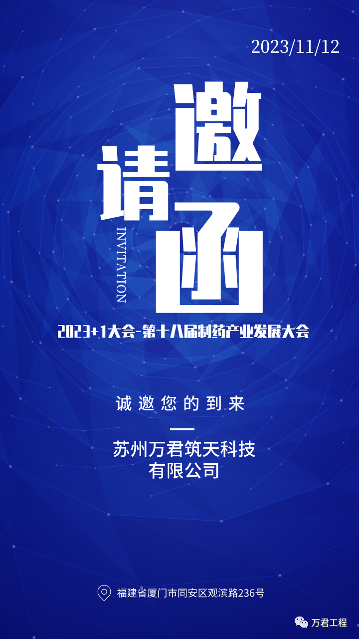 2023+1大會—第十八屆制藥產(chǎn)業(yè)發(fā)展大會,將于2023年11月12日在廈門萬豪酒店及會議中心·會議樓3樓大宴會ABC廳(地址:福建省廈門市同安區(qū)觀濱路236號)召開。蘇州萬君筑天科技有限公司誠邀您共襄盛會!