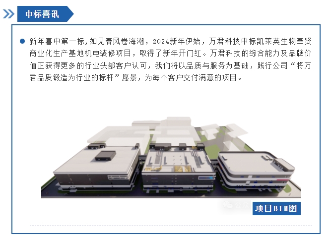 新年第一標(biāo),萬(wàn)君科技中標(biāo)凱萊英生物奉賢商業(yè)化生產(chǎn)基地機(jī)電裝修項(xiàng)目
